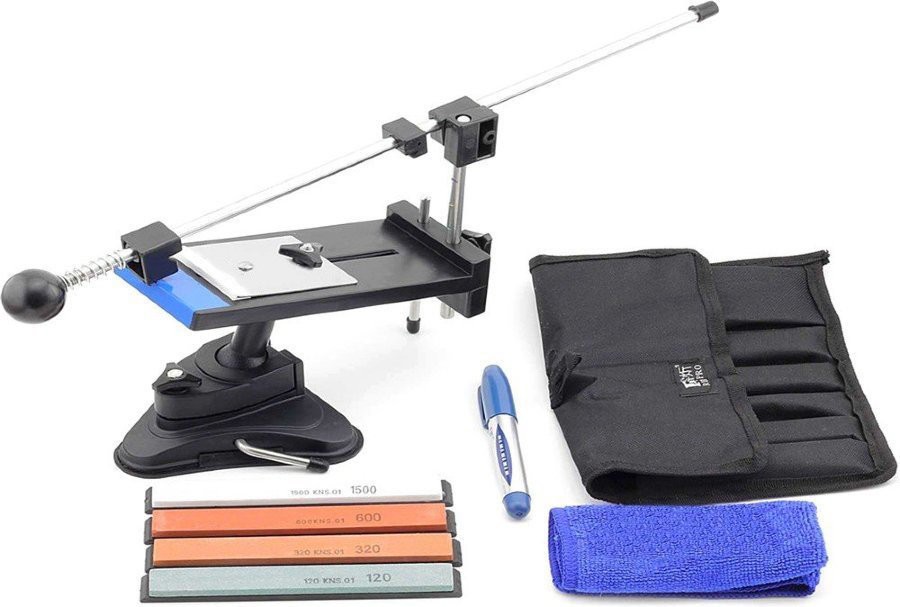 Усовершенствованная точильная система RX 002 позволяет реализовать по-настоящему качественную заточку, с которой ваш нож будет действительно острым. Естественно, при этом есть возможность выбора угла заточки. Работа с ножами на точильном устройстве RX 002 позволяет добиваться хороших результатов даже неопытным точильщикам, занимающимися приведением в порядок своих ножей каждодневного использования. В комплекте с точилкой идет ряд брусков на пластиковой основе. Такое разнообразие брусков диктуется типом зернистости, всего четыре – на 120, 320, 600 и 1500 единиц. Все они, а также синий маркер, хранятся в чехле-органайзере из кордуры. Кроме того, в наборе есть и мягкая салфетка. Инструкция с подробными схемами помогает разобраться в устройстве и сборке приспособления. С помощью шарнирного соединения станина крепится к конструкции, размещенной на подставке с присоской. Присоска фиксирует точилку на столешнице или любой плоской поверхности. При этом она должна быть не фактурной, а гладкой, иначе присоска не будет держаться. Лучше вариант – керамическая плитка.