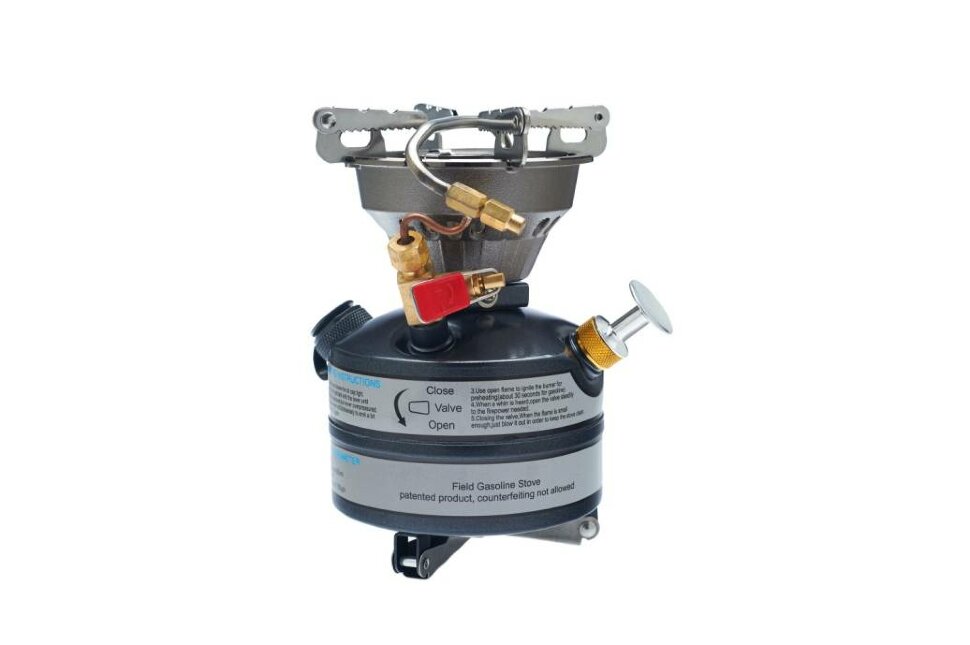 В примусе не предусмотрен пьезоподжиг, но благодаря улучшенной системе поджига, горелка держит широкое и ровное пламя. За час непрерывного горения расходуется 185 грамм, при том, что для закипания одного литра воды требуется всего 3 минуты 20 секунд. Элемент горения жидкотопливный, поэтому работает на бензине. Баллон покупается отдельно. Емкость топливного бака 450 мл. Мощность горения выше среднего 2117 Вт.