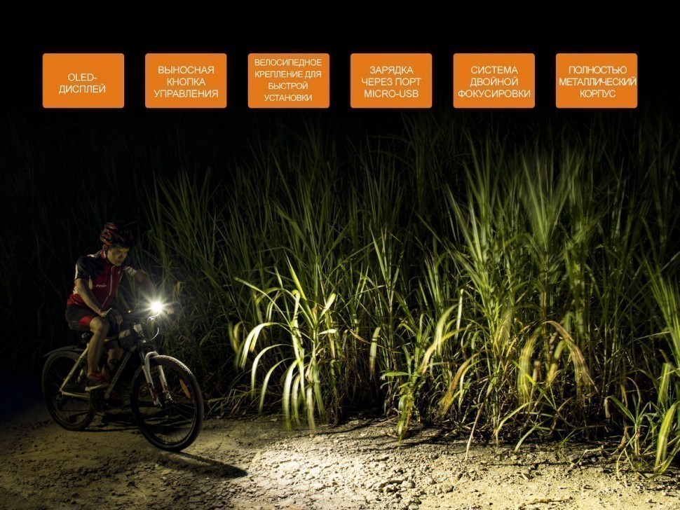 Такой большой набор режимов освещения позволяет для каждой ситуации на дороге выбирать подходящий свет. Более того, в любой велофаре Fenix используется система двойной фокусировки, которая преломляет луч особым образом. Благодаря ней велофара не слепит встречных участников движения, а хорошо освещенными являются все участки дороги, включая и область перед передним колесом.