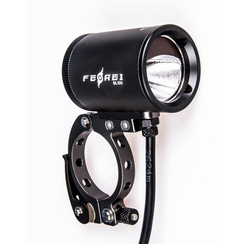 Велофара Ferei BL100 имеет удобное и очень надежное алюминиевое крепление на руль. Фара может располагаться в удобном месте, занимает небольшое пространство на руле. Блок питания крепится к раме с помощью крепежной ленты в удобном месте. Провод, соединяющий фару с блоком питания имеет длину 85 см, что позволяет расположить блок в различных местах, в широких пределах. Аккумуляторный блок крепится к велосипеду с помощью ремешка на липучке.