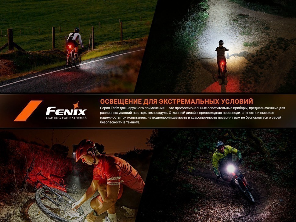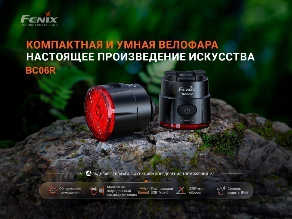 - комплектация — велофара Fenix BC06R, USB Type-C кабель, крепление на седло, стяжки х2, крепление для подседельного седла, монтажный ремень, руководство пользователя, гарантийный талон;
