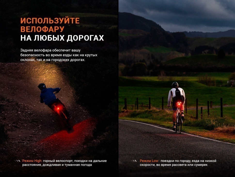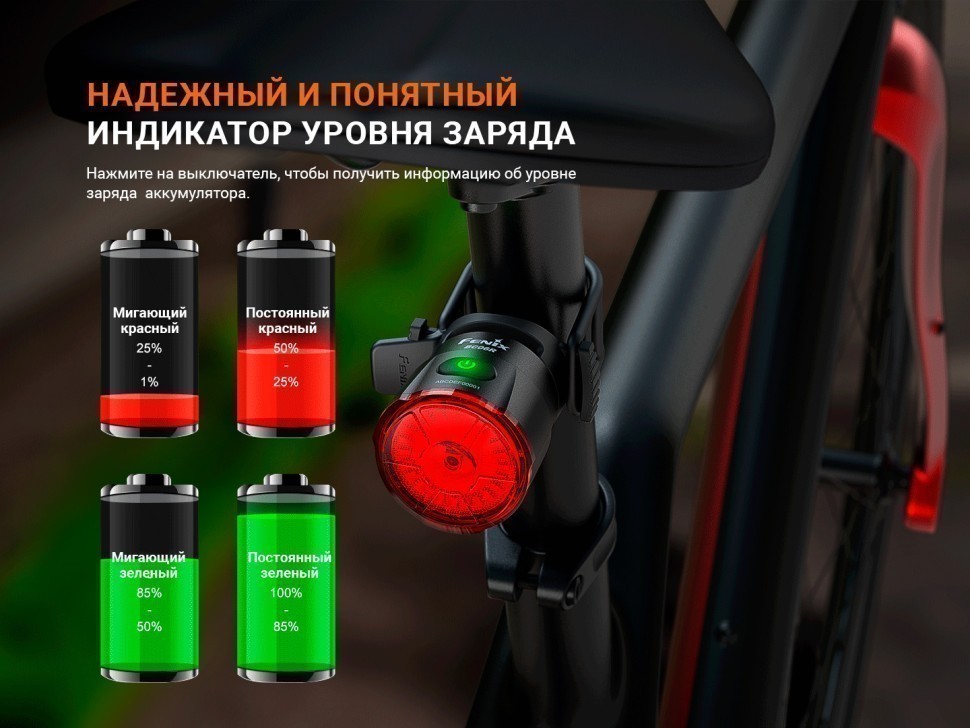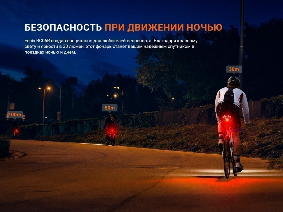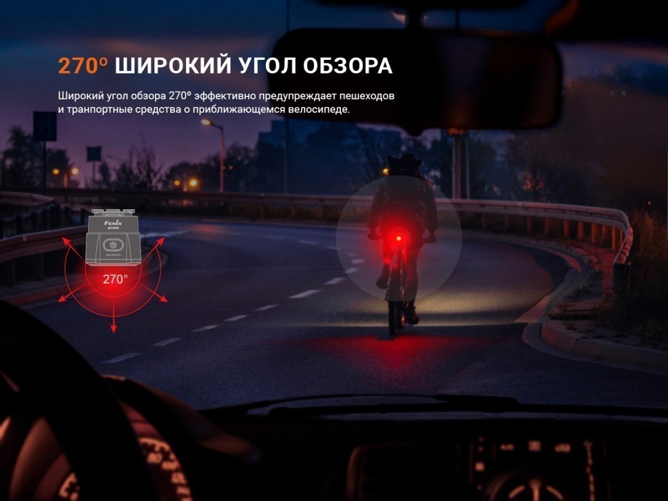 Fenix BC06R — незаменимый аксессуар для велосипедистов, которые ценят свою и чужую безопасность на дороге. Задний велогабарит обладает встроенным аккумулятором и универсальным портом USB Type-C. К его преимуществам также относятся ультракомпактный дизайн, простая установка, удобное управление и 8 режимов освещения, один из которых — режим торможения с максимальной яркостью в 90 люмен.