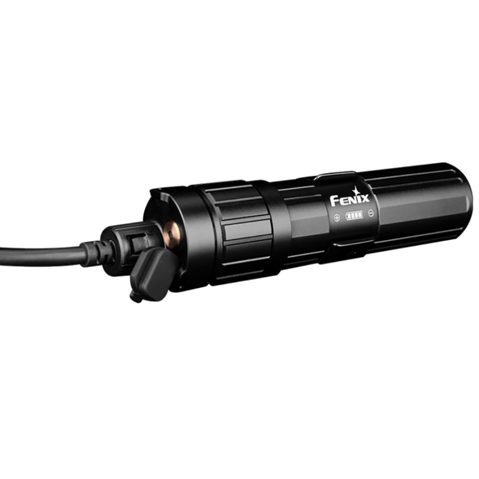 Подключение к фонарю осуществляется с помощью специального USB-C кабеля с фиксирующими замками — они предотвращают случайное отключение. Для надежной фиксации достаточно вставить кабель в разъёмы блока и фонаря, затем повернуть его концы по часовой стрелке.