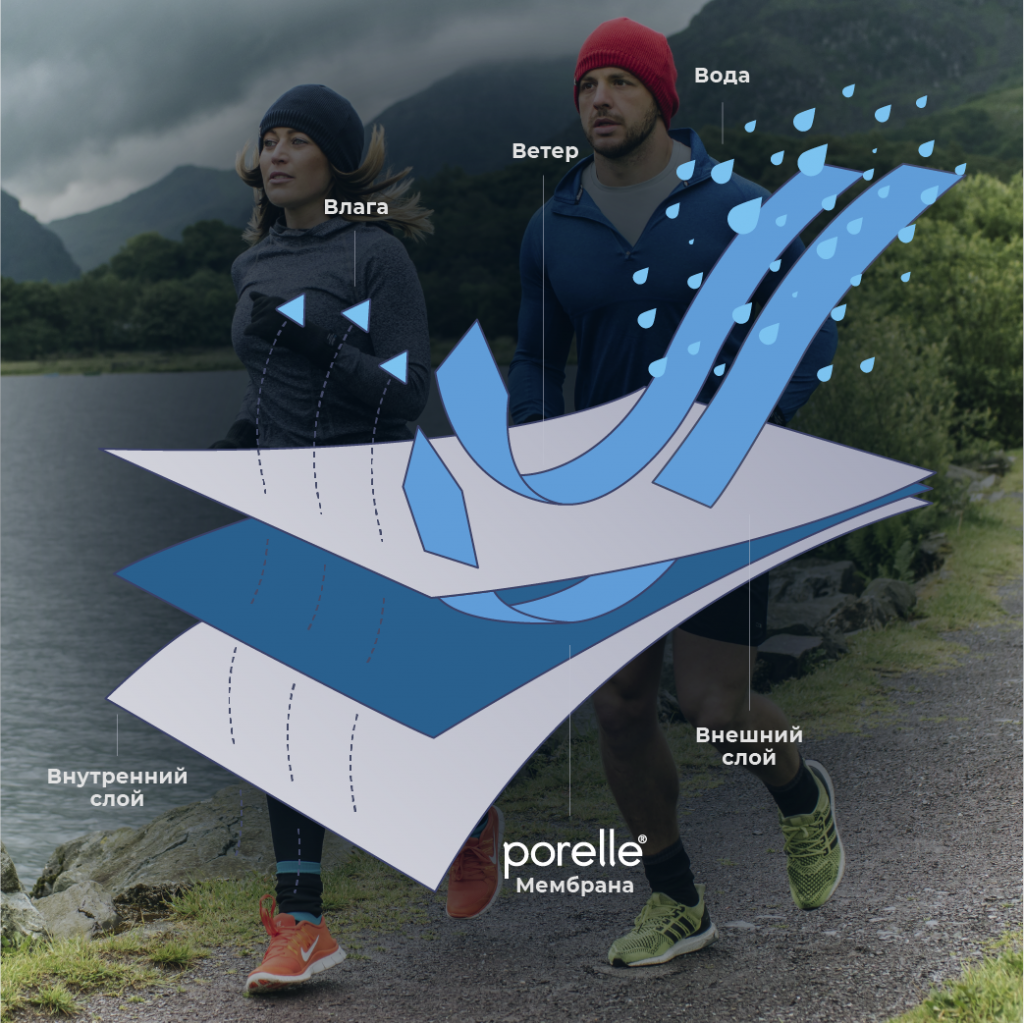 — Главный функциональный слой — мембрана Porelle®, которая производится в Англии. Именно она делает носки DexShell водонепроницаемыми, и главное — отвечает за эффективное потоотведение. Работает эластичная и прочная мембрана Porelle® благодаря разнице температур внутри и снаружи носка, именно поэтому не рекомендуется надевать носки DexShell Mudder поверх обычных;