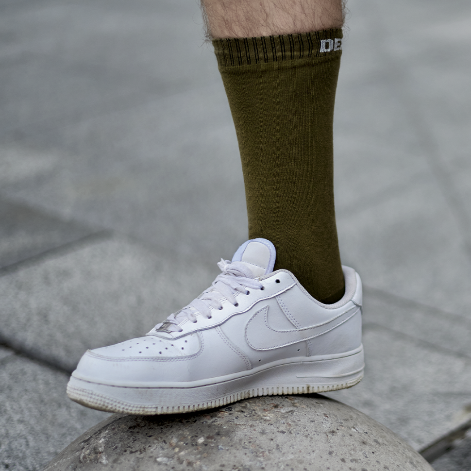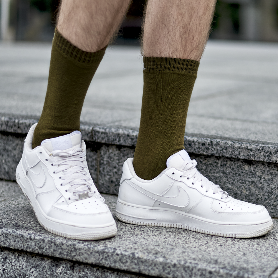 Носки имеют приятную, гармоничную расцветку. Цвета – хаки и серый.
