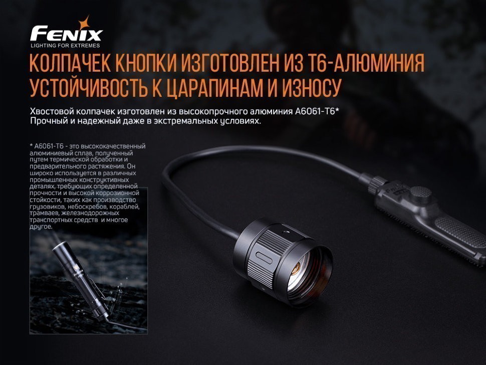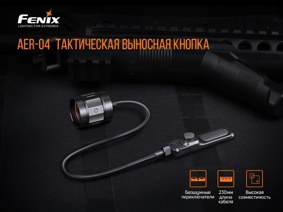 Кнопка Fenix AER-04 пригодится тем, кто занимается охотой, выполняет спецзадания, военные операции, также окажет пользу игрокам в страйкбол. Аксессуар служит для использования совместно с тактическими фонарями, работающими на батарее 21700, например HT18 и прочими моделями. Кнопка даёт возможность вывести на какое-то расстояние механизм управления фонарём, таким образом становясь дистанционным переключателем. Что очень удобно при выполнении тактического задания.