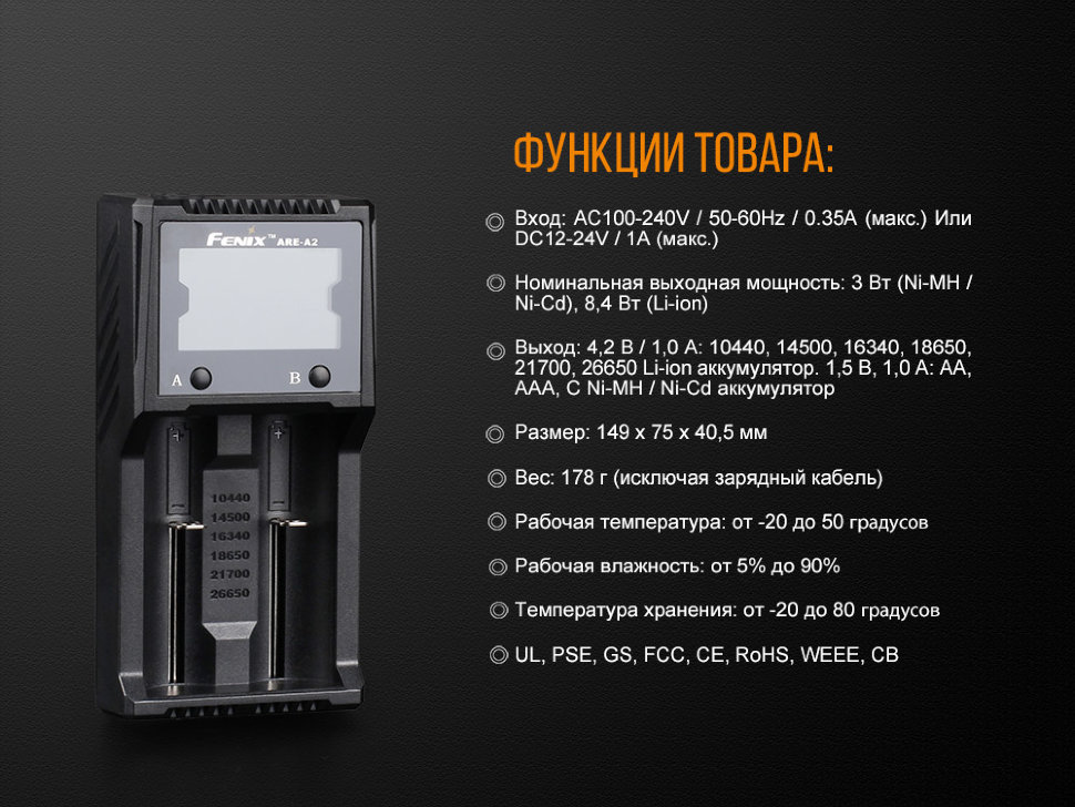 Описание зарядного устройства Fenix ARE-A2: